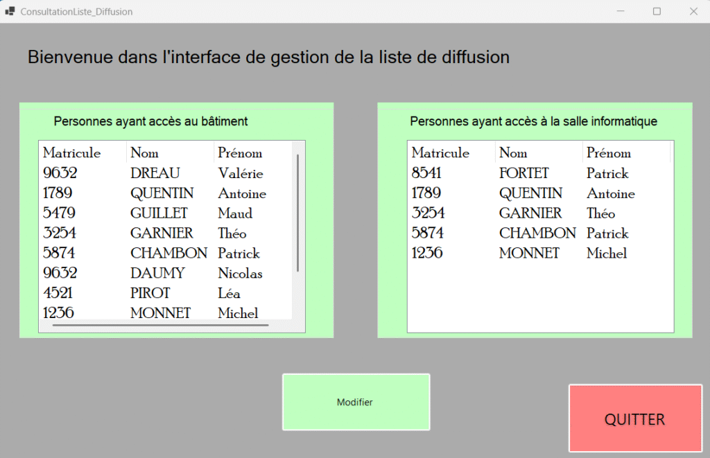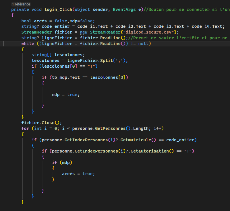 Ce projet a été réaliser en l’espace de 12h par groupe de 3. L’objectif était de développer une application C# avec un interface Windows Form, pour la maison des Ligues de Lorraine dans le but de gérer de façon sécurisée l’accès. Il fallait respecter un cahier des charges. Le chef de groupe a organisé pour chaque personne du groupe des activités à faire bien répartie. Le chef du groupe m’a attribué l’activité 3 qui vise à permettre de gérer une interface de connexion.